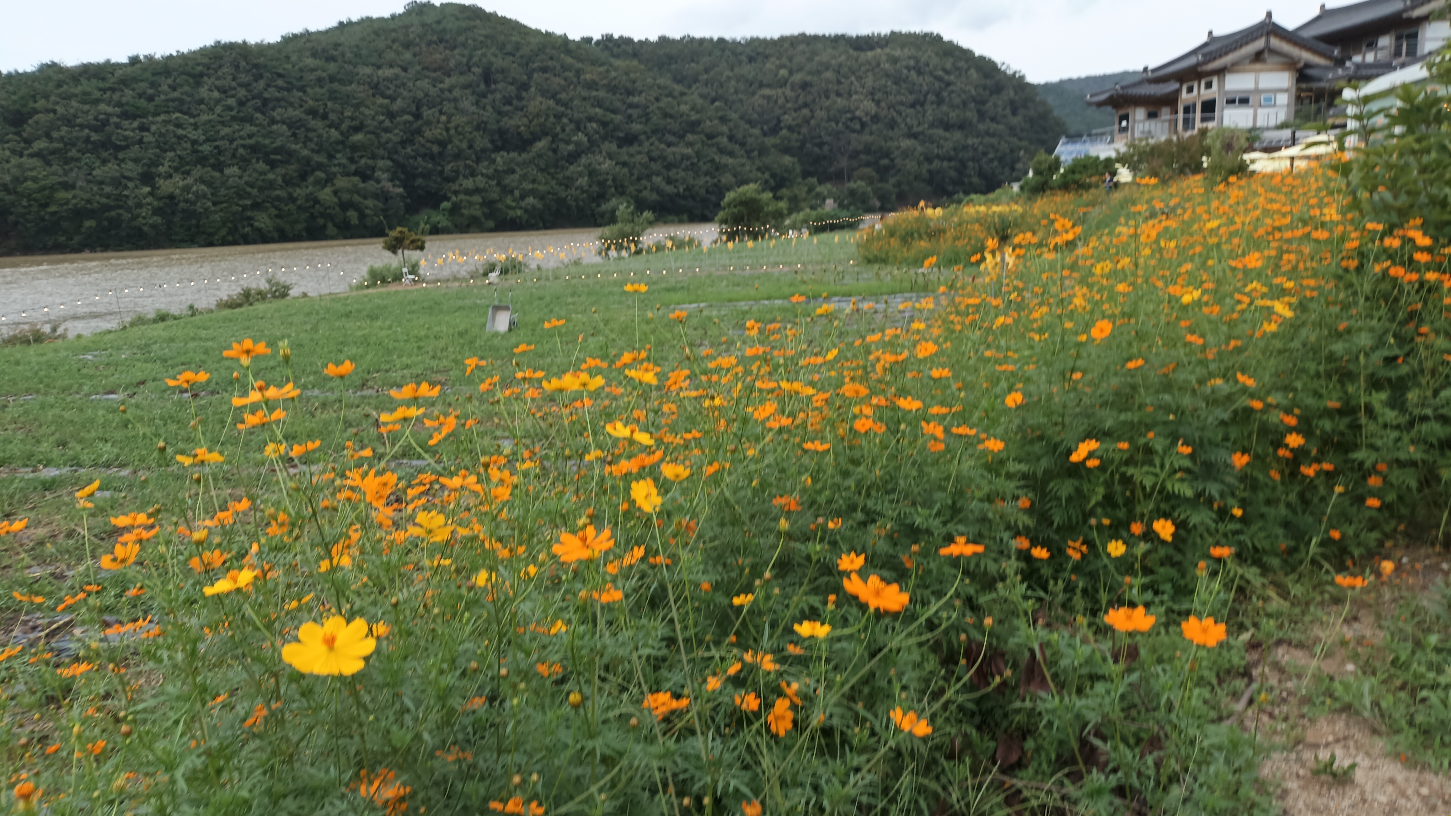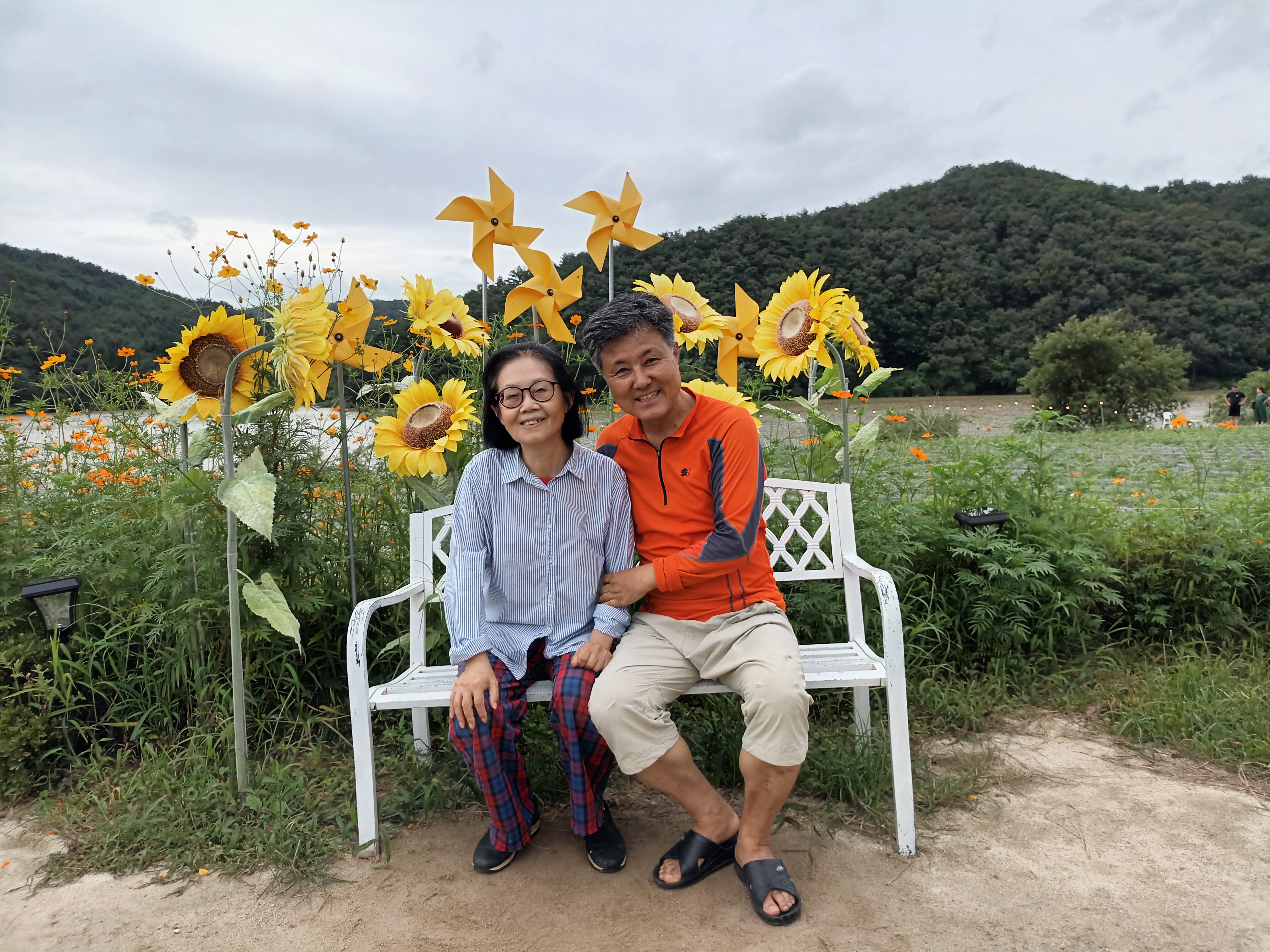 해바라기는 다 지고 조화와 다른 들꽃이 아름답게 피었다