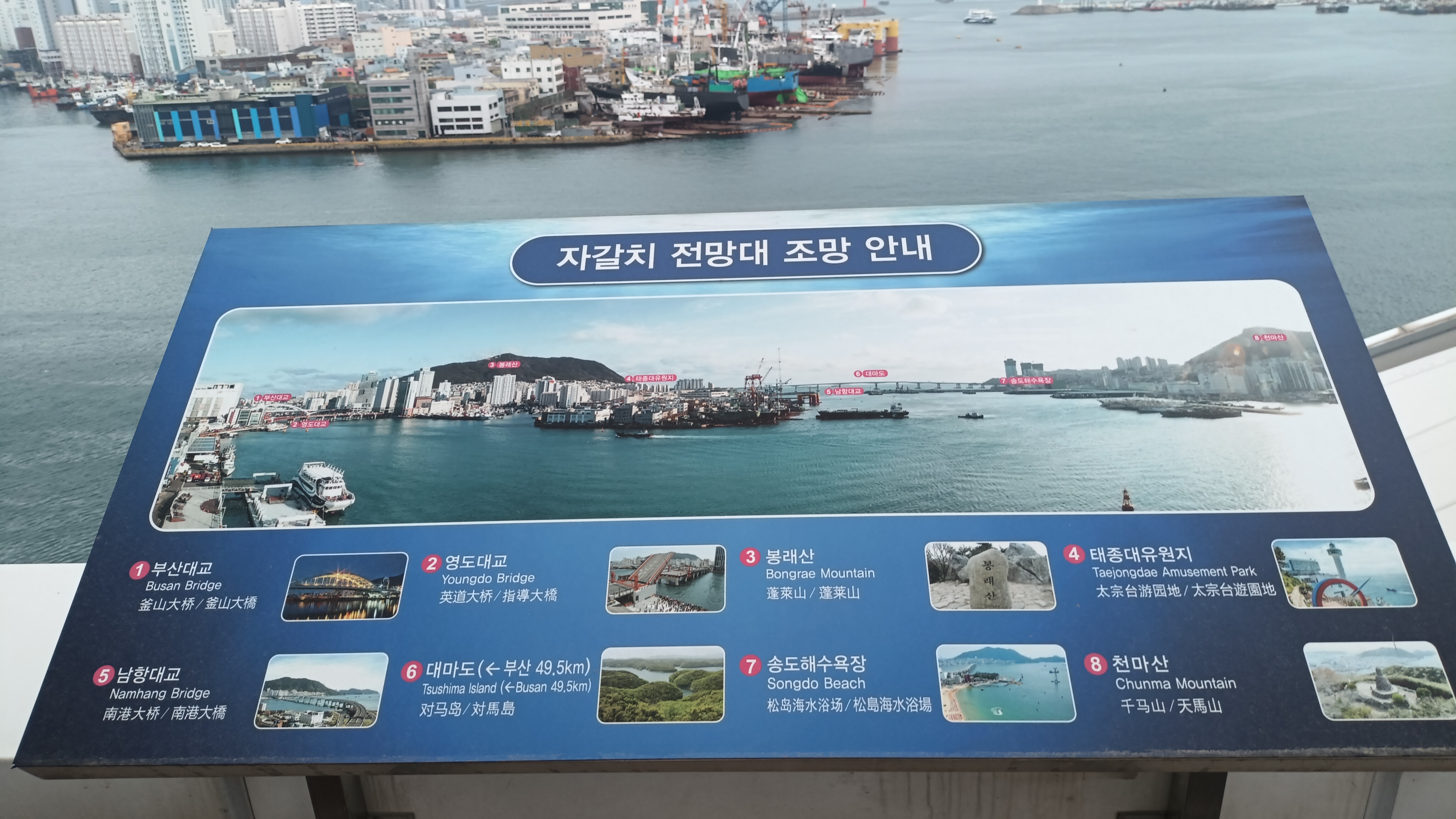 자갈치시장 전망대 올라 부산항을 조망하고 회센타를 담방했다